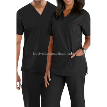 À la mode gommages uniformes blouse slim fit médicale homme noir Anti-rides polyester rayonne spandex 72% 21% 7% tissu costume